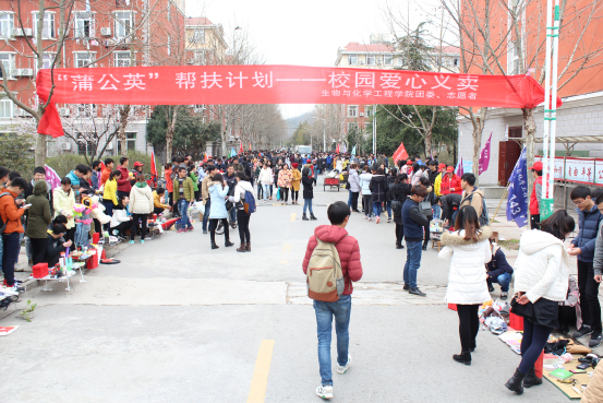 3月9日下午,生化学院“蒲公英帮扶计划——校园爱心义卖”活动在校园内如期举行,数以千计的学生被吸引到“学雷锋 见行动”志愿服务活动中。