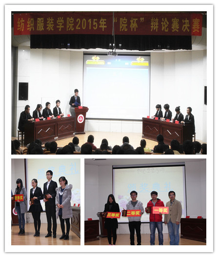 3月15日晚,纺织服装学院“院杯”辩论赛决赛在校学术报告厅成功举办。院党委副书记孙宏义,院团委书记、辅导员和学院近300余名同学一起观看了比赛,上届最佳辩手和演讲与口才协会会长担任比赛评委。