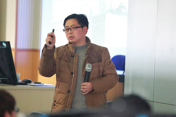 会上,魏利胜从底特律城市概貌,底特律大学校园文化和学习生活三个方面进行了深入讲解。他将自己在底特律大学研修期间的所见所闻用PPT方式直观地呈现在学生面前。魏利胜重点介绍了底特律城市生活的便捷性与安全性,强调了底特律大学小班教学的突出优势,让学生对底特律大学学习生活情况和当地风土人情有更为清晰和直观的认识。金成星介绍了高校国际化发展的大趋势,并从高校人数、校园环境和人文精神三个方面对比了国内外高校的差异。结合留学费用及语言考试问题,他强调学生应目光长远、立足今后发展,勇于克服当前困难。