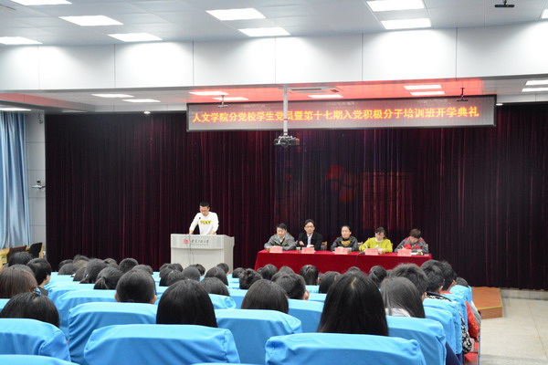 4月6日下午,人文学院分党校第六期学生党员暨第十七期入党积极分子培训班开学典礼在5教117举行。校党委宣传部副部长吴月红,院党委委员、副院长刘军,社工党支部书记黄江胜,行管党支部书记李婕及两期培训班学员参加了开学典礼。典礼由院党委副书记、分党校副校长金艾裙主持。