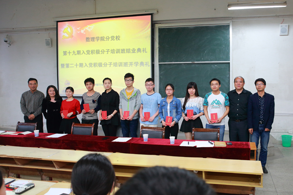 4月14日下午,数理学院分党校第十九期入党积极分子培训班结业典礼暨第二十期入党积极分子培训班开学典礼在二教107举行。校党委宣传部副部长吴月红,院党委书记、分党校校长周毅仁,院长费为银出席典礼。两期培训班班主任及全体学员参加了典礼。典礼由数理学院党委副书记水心宝主持。