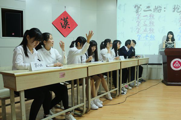 进入决赛的32名选手分为8个小组进行了三个环节的比拼。必答题环节,选手们根据汉字听写员发音及解释,挥动笔杆,写出相应的词语;这一环节中,连续两道题目答错或不作答的小组将不能继续参与必答环节。经典诵读环节,选手们展示了与众不同的风采。《滕王阁序》、《春江花月夜》、《你是人间四月天》等经典诗词歌赋的诵读,赢得现场观众阵阵热烈的掌声。在抢答题和成语接龙环节中,各组选手争先恐后、不甘示弱,尽情的展示着自我风采,现场气氛达到高潮。经过三个环节的激烈角逐,最终依照选手现场表现和得分情况,评出一等奖一名,二等奖二名,三等奖三名,最佳风采奖及人气奖各一名。
