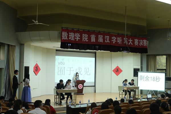 4月16日上午,数理学院首届汉字听写大赛决赛在学术报告厅举行。数理学院团委负责人、大一辅导员、兄弟学院学生会主席观看了比赛。