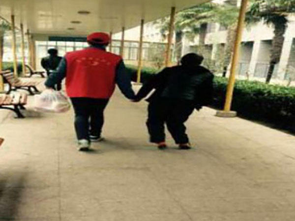 志愿者协助行动不便的老人就诊