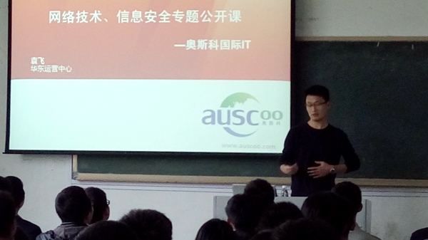 4月20日下午,计算机与信息学院邀请奥斯科国际IT(简称:AUSCOO)华东区域运营中心技术总监袁飞向大一和大二部分同学举办了网络技术与信息安全专题讲座。