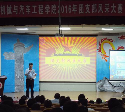 为加强团组织建设和思想建设,增强团员意识,促进团的工作交流,近日,机械与汽车工程学院2016年团支部风采大赛在学术报告厅隆重举行,机械学院党委书记邓英扣、副书记周怡老师、辅导员孙霞、杜贤赞、杨栎模出席本次大赛、学生处秘书王介石、电气学院团委书记蔡金平、体育学院团委书记王彦青、校团委赵争、机械学院团委书记黄炜担任比赛评委。
