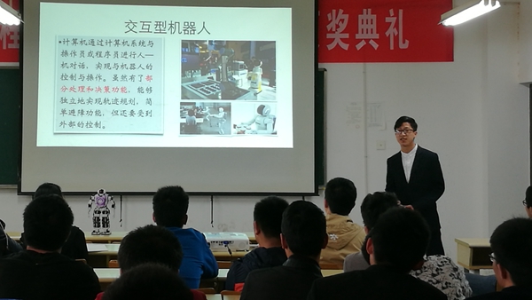 韦振南同学曾多次获得国家级、省级和市级奖项,有着很强的实践能力与创新能力,在智能机器人学习方面也很有心得。本次论坛开阔了同学们的眼界,激发了同学们对智能机器人的学习兴趣,为同学们后面的专业学习起到了一个很好的引领作用。