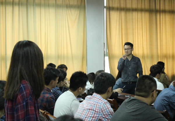 张学东对设计工作坊在引入企业职业设计师的资源对学生多学科交叉、团队合作训练等方面的目的、意义作了充分肯定,对参与的学生寄予厚望。之后,杭州慧峰科技公司的交互设计总工汪虎生在现场进行了精彩的交互设计讲座。汪虎生现任杭州慧峰科技有限公司产品设计总监,国内首款PK选秀娱乐平台(APP)创始人,华为技术有限公司智能互联-家网络(APP) android开发工程师、PL,八鸽汇信(APP) 视觉交互设计与android开发工程师,八鸽快消通视觉设计与 android开发工程师。他把企业最新的、最前线的交互设计知识以及自己设计实践和经验传授给学生们,赢来阵阵掌声。课堂上,学生们本着求知欲和对交互设计的浓烈兴趣,在与师生的问答互动中收获良多。