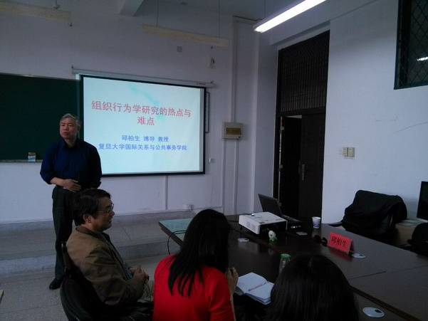 5月14日上午,应人文学院邀请,复旦大学国际关系与公共事务学院博导邱柏生教授为我校MPA研究生作题为“组织行为学研究的热点与难点”的报告。报告会由人文学院副院长刘军主持。