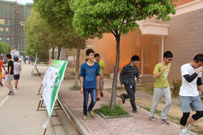 经过紧张周密部署之后,消防演习正式拉开帷幕。保安人员在宿舍门口点燃烟雾弹,烟雾瞬间笼罩了整栋楼。不久后,正在宿舍里午休的同学们纷纷掩鼻跑出宿舍楼,他们按照之前学习的逃生技能,有序快速撤离宿舍,并在学生干部的带领下在篮球场指定位置排成安全阵型。整个演习有条不紊,在短短的几分钟便完成了所有事项。