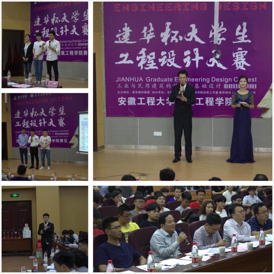 为培养大学生实践创新能力、团结合作精神,激发大学生运用理论知识解决实际问题的热情,加强高校与企业之间的联系,5月23日,由建华建材集团主办,我校建筑工程学院创客工作室、建华建材(安徽)有限公司承办的“建华杯·大学生工程设计大赛(安徽赛区)”在C座三楼报告厅顺利举办。