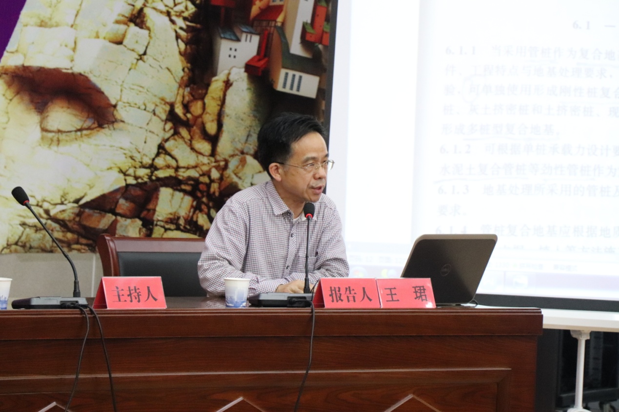 比赛前,合肥工业大学设计院集团有限公司结构工总工程师、国家一级注册结构工程师、总工程师、硕士生导师王珺应邀为学生作了题为《预制桩的应用与发展》的学术报告,报告深入浅出,十分精彩。