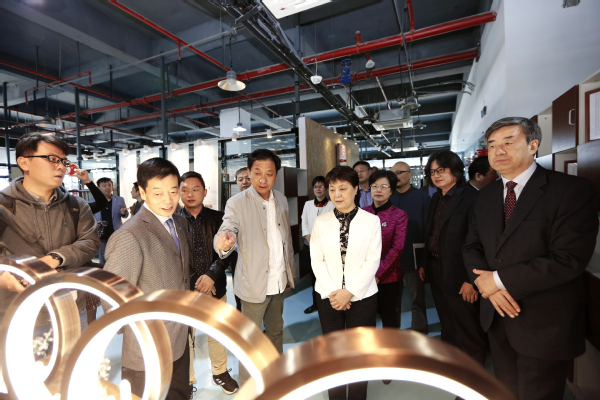 随后,王翠凤一行来到位于芜湖国家级广告产业园内的安徽工程大学创意产业研究院,了解学校产学研合作及服务地方发展情况。她先后参观了安徽悦玺文创、MPA教育中心、服装设计研究院、大学生众创空间、皖江产业发展研究院等平台,并与师生、科研人员进行亲切交谈。王翠凤对学校整合资源与地方合作共建科技创新平台的举措表示赞赏,对师生的创新精神和实践能力给予肯定,鼓励师生将更多的创意转化为产品,并注重加强知识产权的保护。