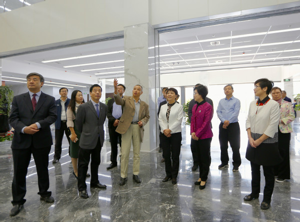 王翠凤一行首先来到学校新落成使用的图书综合楼,参观了阅览区、展示厅、文澜阁、多媒体视听室等服务空间,听取关于图书馆办馆理念、服务体系、信息资源建设、办馆特色等方面的汇报,询问了自助借还、座位预约等系统的使用情况,观看了多媒体视听室的现场演示。她称赞学校图书馆设施先进齐全、创新特色鲜明,是开展教育教学活动的重要支撑,对提高人才培养质量有重要作用。