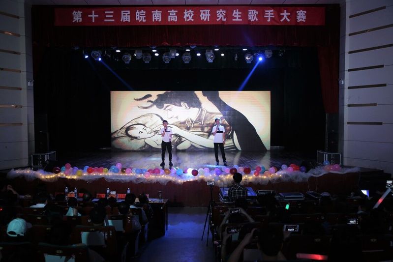 (本网讯)5月17日晚7点,由安徽师范大学研究生院,皖南医学院研究生学院,安徽工业大学研究生院,安庆师范大学研究生院、安徽工程大学研究生部(党委研究生工作部)联合主办,安庆师范大学研究生院(党委研究生工作部)和共青团安庆师范大学委员会承办的“第十三届皖南高校研究生歌手大赛”在安庆师范大学龙山校区音乐厅顺利开幕。安徽工程大学党委研究生工作部副部长、研究生部副主任王海,皖南各高校研究生管理部门负责同志到现场观看,来自五所高校15组选手深情献唱,千余同学前来加油助威。