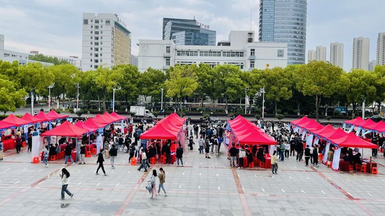 本网讯 为深入贯彻党的二十大精神,认真落实党中央、国务院“稳就业”“保就业”决策部署,全力促进2023届研究生毕业生顺利就业、尽早就业,4月13日,研究生工作部联合大学生就业创业指导中心、合肥经开区人社局和江苏泰州市人社局在校本部图书综合楼广场举办“学校2023年研究生专场招聘会暨春季大型综合双选会”。