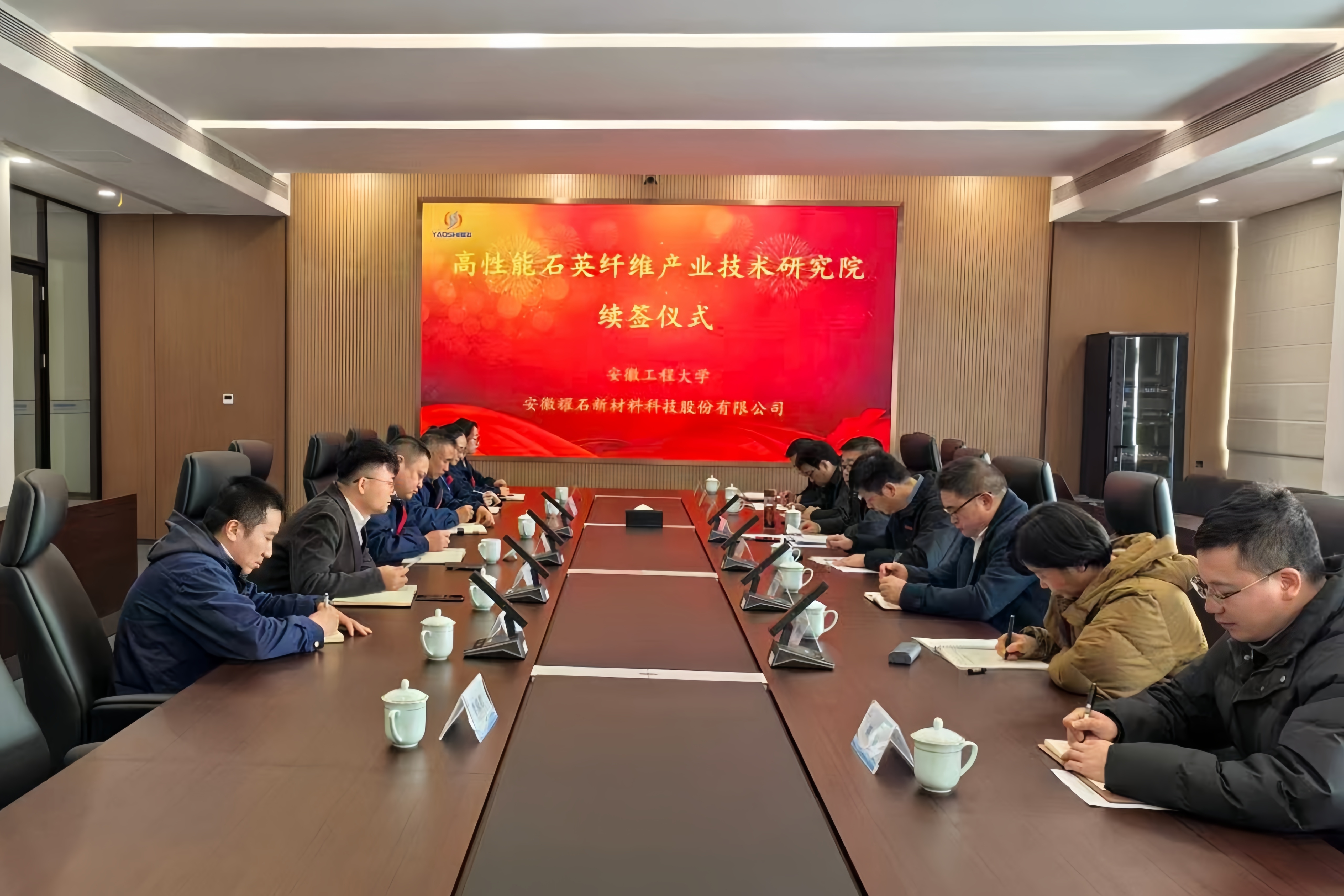 会上还举行了高性能石英纤维产业技术研究院院长聘任仪式,李国富、唐松两位老师分别被聘为院长和副院长。教师代表谢艳霞教授与耀石科技签署产学研合作协议。校企双方围绕工艺改进、新品研发、对接机制及保障措施等议题展开深入研讨,并达成共识。