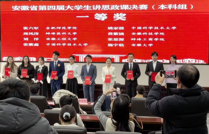 本网讯 12月27日,安徽省第四届“大学生讲思政课”决赛在安徽芜湖落幕。我校马克思主义学院研究生刘洋团队荣获决赛一等奖。