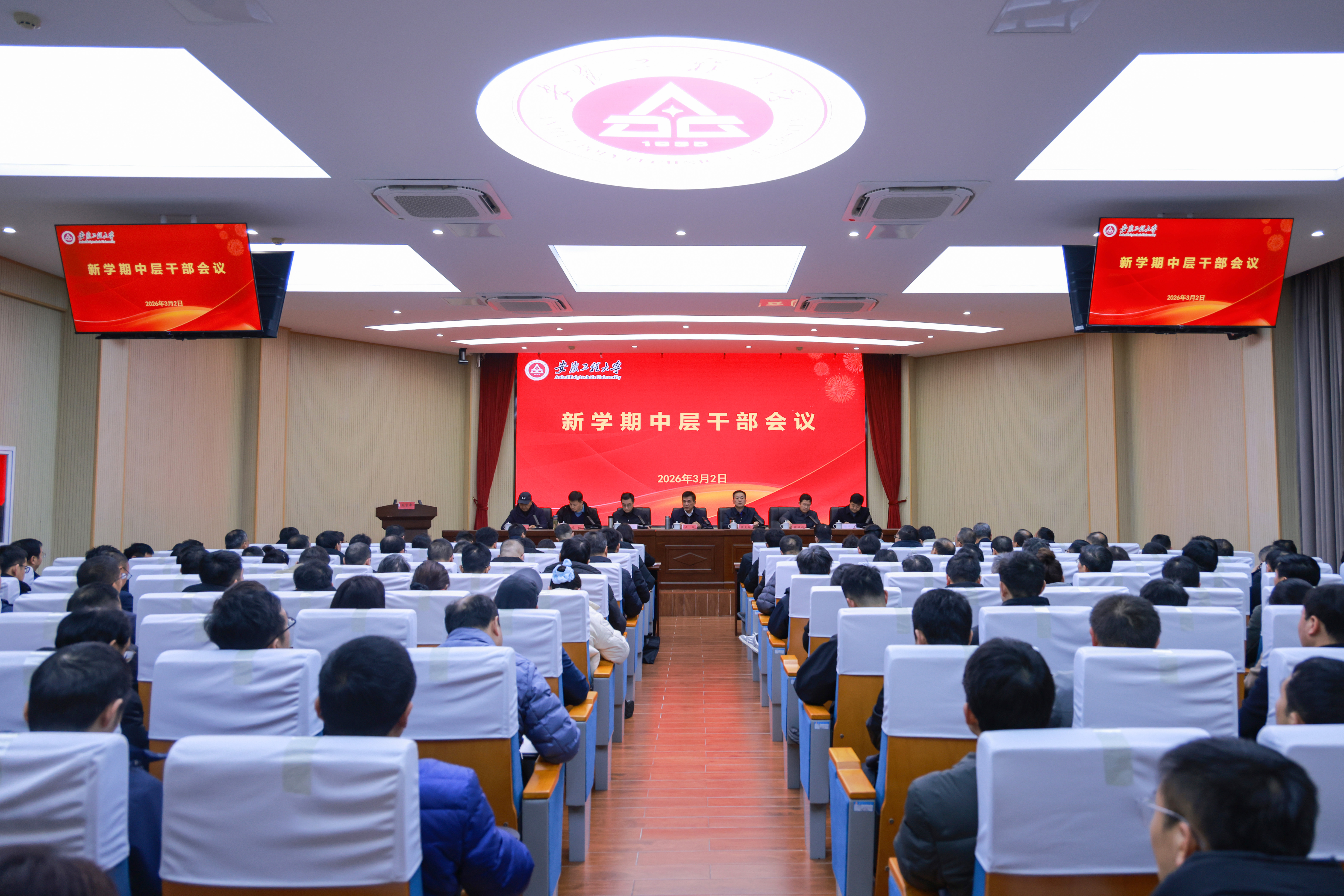 本网讯 3月2日,学校在A座104会议室召开2026年春季学期中层干部会议,会议套开了党委理论学习中心组学习(扩大)会议。校党委书记卢平,校党委副书记、校长黄友锐,校领导郑健、程双四、凤权、张开炳、高彦峰出席会议,全体中层干部参加。