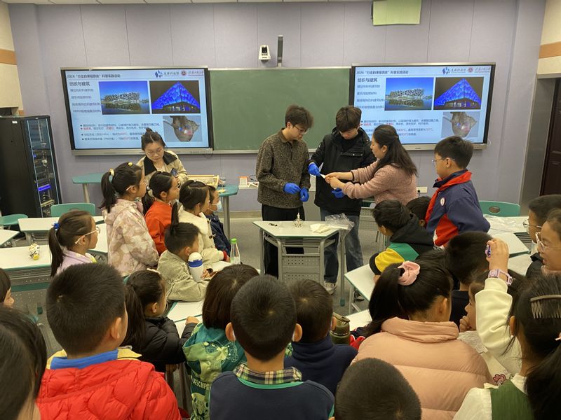 4月3日,“行走的课程思政”公益团队联合芜湖科技馆在4J101教室开展“童心筑梦,共同寻‘纺’——无处不在的纺织”科普讲座和科技小制作活动。纺织服装学院孙妍妍老师为小朋友们讲解了纺织在衣用、建筑、医疗、航空航天、国防等领域的应用;团队成员开展了纳米气凝胶趣味实验,科普讲解了“会变魔法的台灯——解开声控灯的小秘密”。在团队志愿者们的悉心指导下,孩子们动手制作声控灯,寓教于乐,在感受纺织的魅力与乐趣的同时,激发了他们对科技探索的热情。