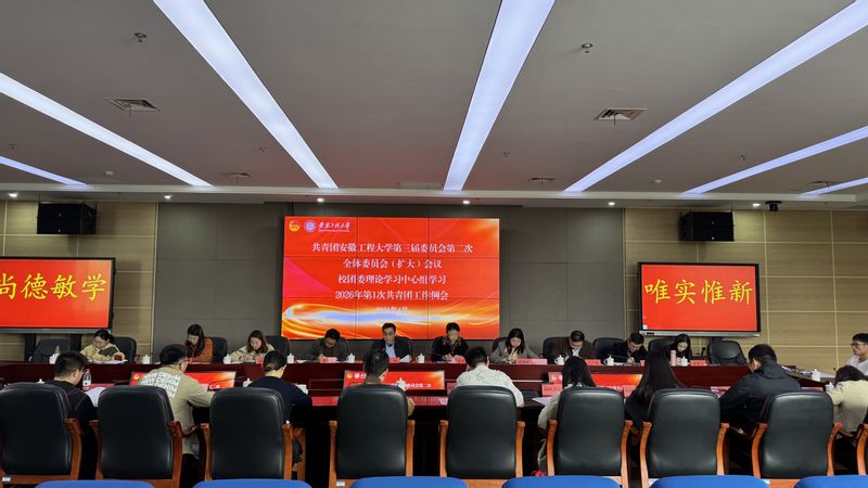 本网讯 4月2日,共青团安徽工程大学第三届委员会第二次全体(扩大)会议在图书综合楼201会议室召开。校党委副书记郑健,校党委组织部正处级组织员章靖平到会指导。共青团安徽工程大学第三届委员会全体委员、各学院团委负责人、校团委全体工作人员参会。