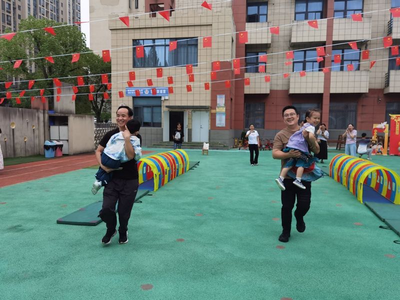 手工环节结束后,欢乐的亲子游戏正式登场。袋鼠接力、穿越火线、轮胎滚滚等七个游戏项目,吸引了家长和孩子们踊跃参与,教室里、操场上笑声、加油声此起彼伏,活动现场热闹非凡。老师还为孩子们准备了奖牌,小朋友们戴上奖牌时的笑容格外灿烂。