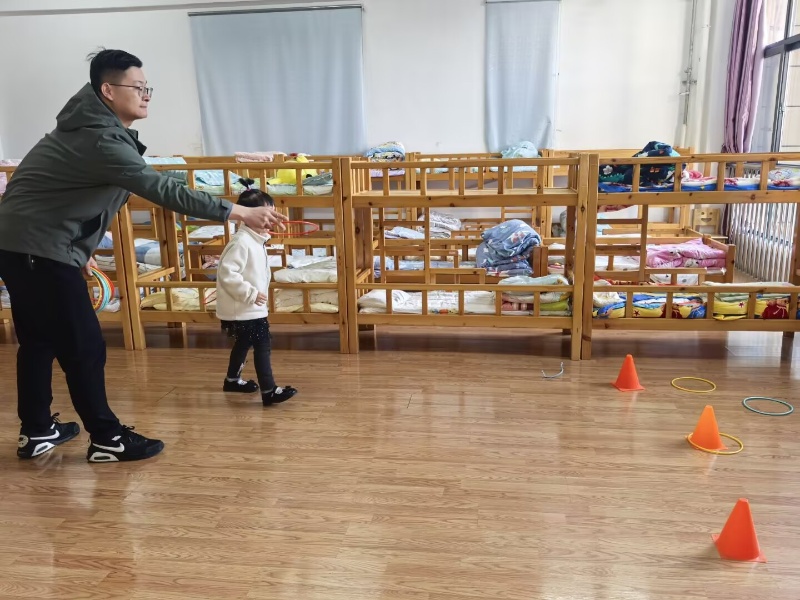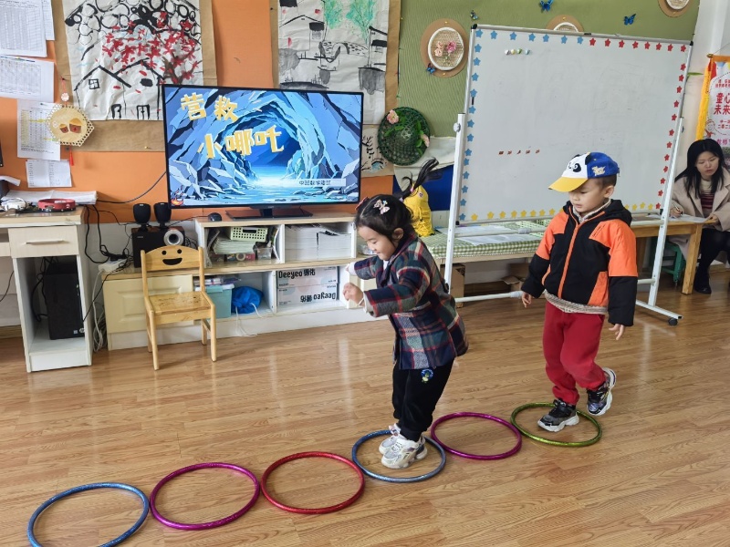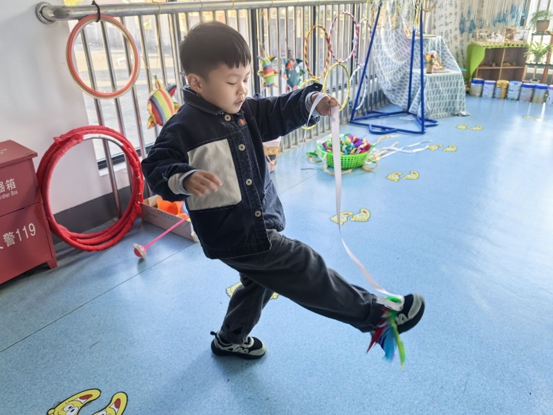 阳光正好,园内暖意融融,班级与走廊的区角里满是童趣。孩子们围着彩色圈圈雀跃不已,他们时而踮着脚尖跳过圈圈,时而眼神专注地瞄准目标套圈;五彩毽子在脚尖上下翻飞,孩子们灵活跳动,尽显肢体协调性与专注力,清脆的笑声随着跳跃的身影四处飘散。家长们驻足喝彩,现场满是欢声笑语。