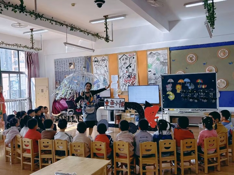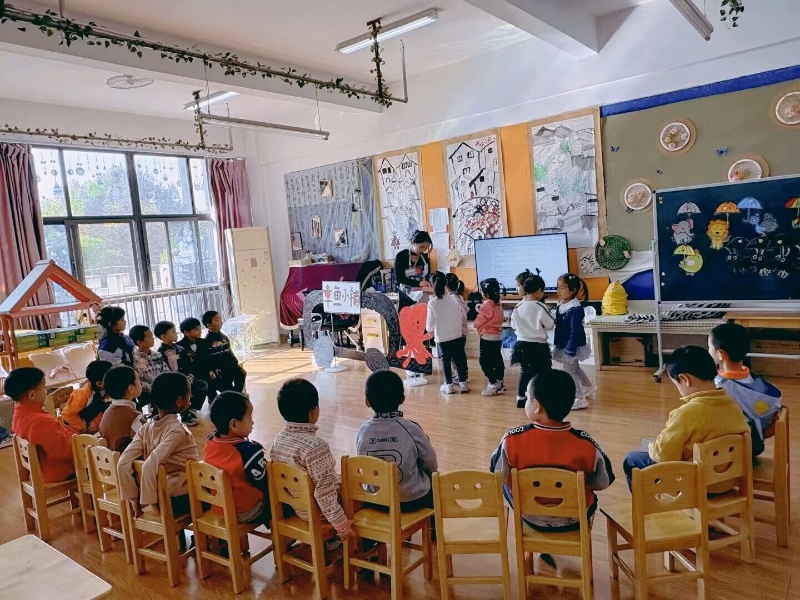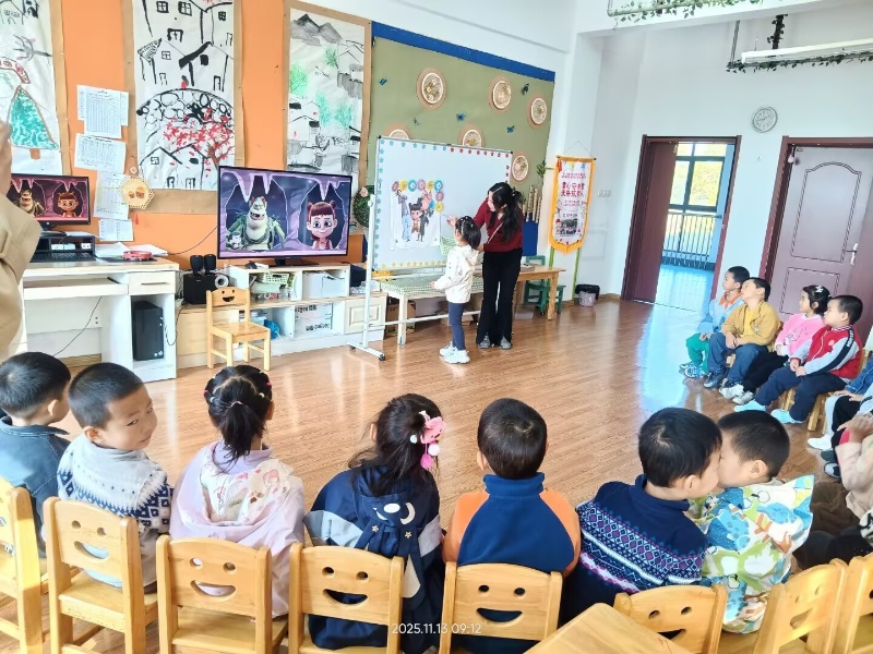 教学活动环节中老师们精心设计的活动让家长们眼前一亮。首先是强老师展示的数学活动《营救小哪吒》,以趣味情景为载体,孩子们化身“小勇士”,在破解难关的任务中,主动探索形状、颜色的排序规律。孩子们积极思考、踊跃举手,在“全家福”操作环节中感知了排序的乐趣,并掌握其在生活中的运用。接下来是李老师的音乐活动《章鱼先生卖雨伞》,活动通过生动的故事情境,让孩子们轻松了解雨伞的用途与章鱼的特点。在李老师的引导下,孩子们跟随旋律尽情舞动,整节活动充分展现了孩子们的想象力与表现力,活动氛围欢乐而热烈。