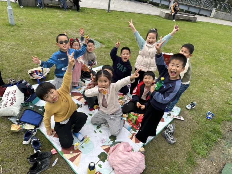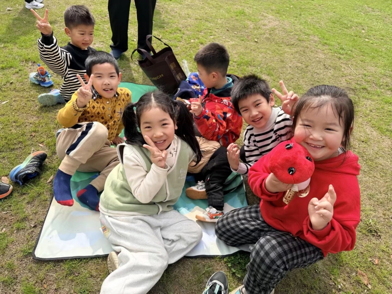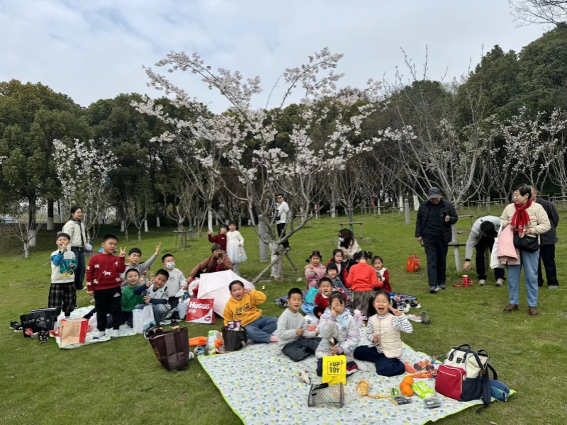 活动伊始,孩子们来到绿意盎然的公园。春风拂面,鸟语花香,大家一路观察、一路发现,寻找发芽的小草、盛开的花朵、抽枝的树木,在阳光下奔跑嬉戏,感受春天的生机与美好。大家围坐在野餐垫上,分享美食、嬉戏玩耍,在春风里放声欢笑。樱花树下,孩子们与同伴、家长、老师合影留念,用镜头定格春日美好,在轻松愉悦的氛围中感受自然之美,增进同伴情谊与亲子联结。