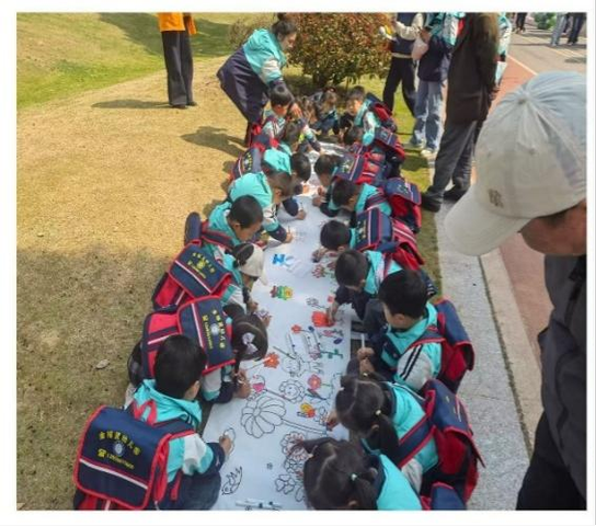 活动现场,数米长的洁白画卷在青翠草坪上缓缓铺开,瞬间成为全场焦点,引得往来市民纷纷驻足围观、踊跃参与。在“暖暖设计家”志愿者们的细心引导与专业指导下,孩子们满怀兴致地俯身执笔涂鸦,稚嫩的小手握着画笔,一笔一划都饱含纯粹童真,勾勒出心中最灵动的春日模样;家长们全程陪伴在侧,俯身与孩子一同调色、勾线、填色,亲子协作的温馨画面与春日美景相融,定格成一幕幕治愈动人的美好瞬间,让艺术的快乐在亲子互动间悄然传递。