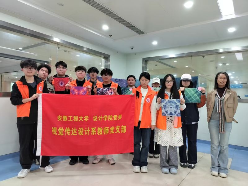 为深入推进艺术疗愈与非遗传承融合,践行高校服务社会的责任使命,4月15日下午,芜湖市第五人民医院联合安徽工程大学设计学院视觉传达设计系教师党支部,在康复二楼治疗大厅成功举办了以“扎染闹海·小小非遗传承人”为主题的亲子艺术疗愈活动。活动以国家级非物质文化遗产——扎染为媒介,通过身体律动、触觉感知、捆扎浸染等环节,为星星的孩子们带来了一场兼具文化韵味与疗愈力量的创意体验。