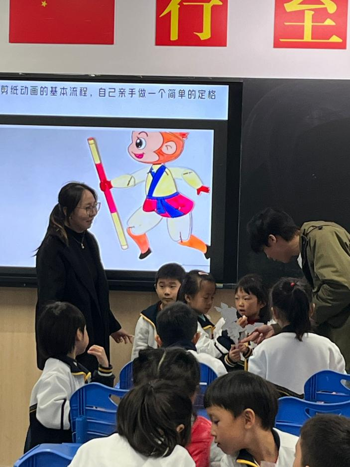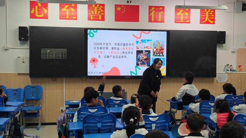 为弘扬中华优秀传统文化,以美育赋能青少年成长,11月13日,设计学院动画与数字媒体艺术学生党支部联合新媒体设计系教师党支部师生代表一行,走进安徽师范大学附属外国语学校城东校区一(11)班,为小学生们带来了一场别开生面的“走进国漫,发现中国之美”主题活动。活动将专业所学与中国传统动画文化深度融合,在孩子们心中播下了文化自信的种子。