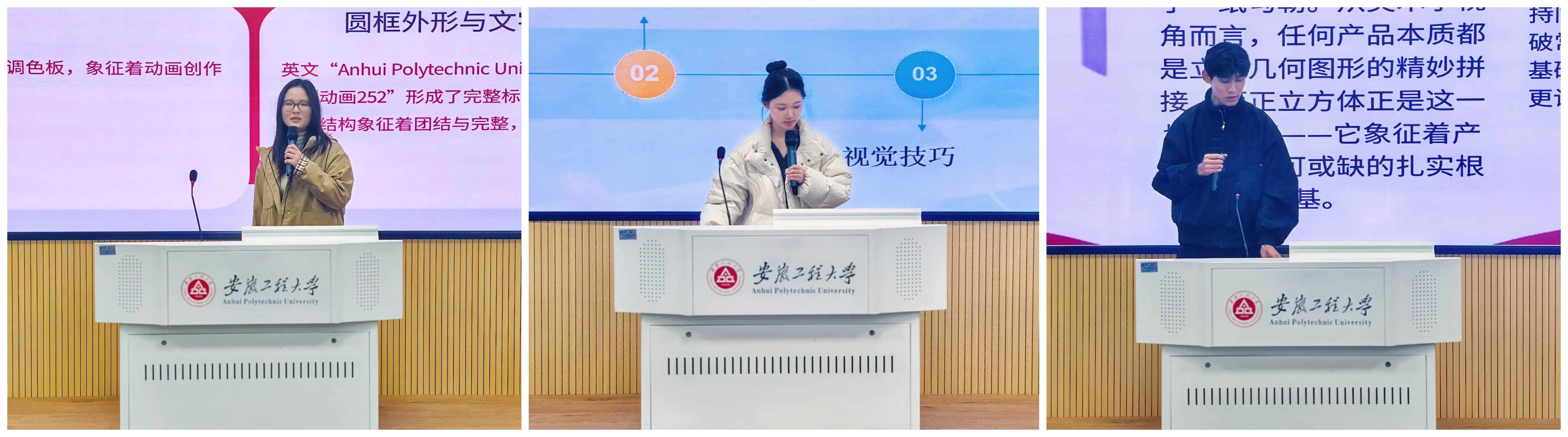 本次大赛以“九秩校庆,徽咏班魂”为主题,旨在通过班徽设计激发学生的创造力与团队协作精神。活动自启动以来,历经班级初选、学院初审,最终共有13组优秀作品脱颖而出,进入决赛。决赛现场,参赛选手结合精心准备的PPT,从设计理念、元素构成、象征意义及文化内涵等方面,对各自的班徽作品进行了全面阐述。选手们的设计构思巧妙、寓意深远,充分展现了设计学院学子的专业素养与青春风采。最终,动画252班获一等奖;工设251班,广告251班获二等奖;产设251班、数媒251班、动画251班获三等奖;环设251班等7个班级获优秀奖。