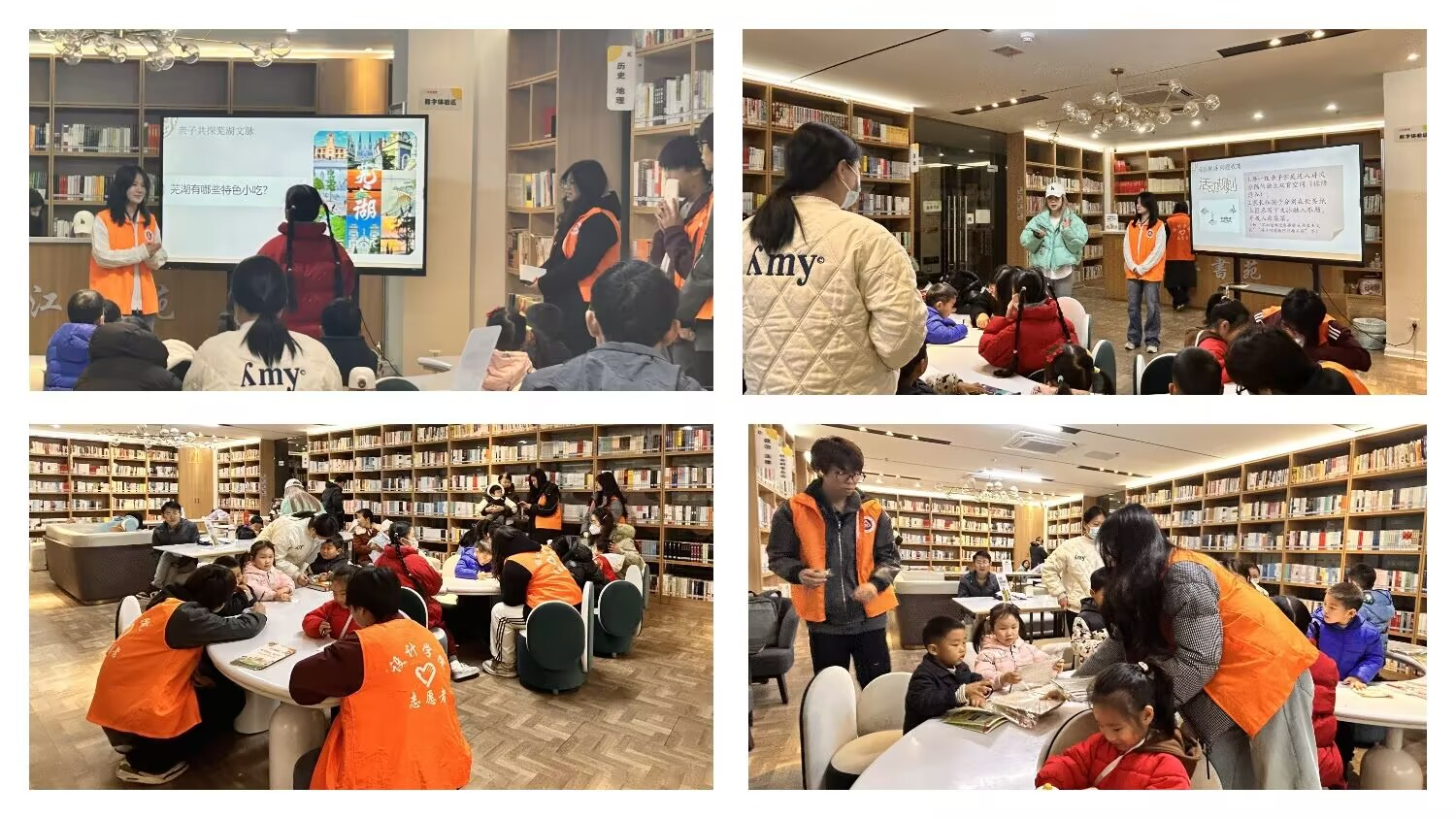 活动开场,暖场破冰环节迅速炒热气氛。志愿者亲切介绍芜湖古称“鸠兹”的由来,点明“亲子共探芜湖文脉”主题。随后“芜湖小问答”互动游戏登场,问题贴近生活,孩子们热情高涨,高举小手抢答,家长适时补充,现场欢声笑语,亲子家庭初步唤醒对本土文化的关注与记忆。